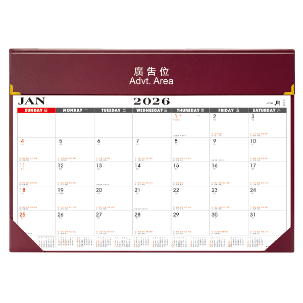 TC268 PVC 皮金角檯墊月曆 (雙色月曆肉)
